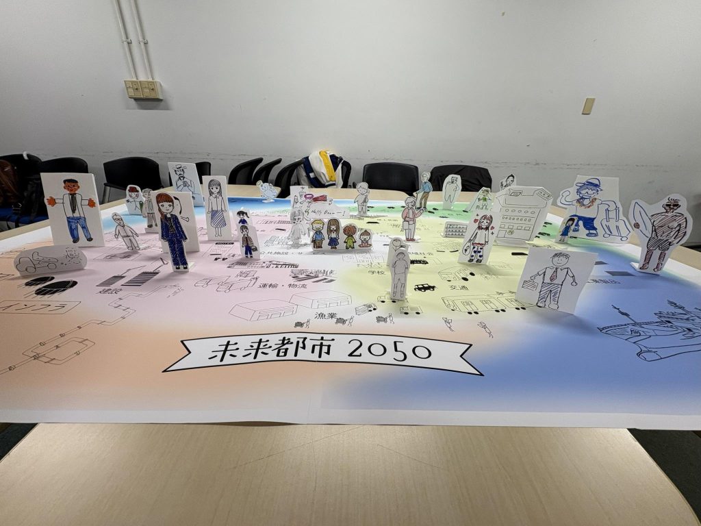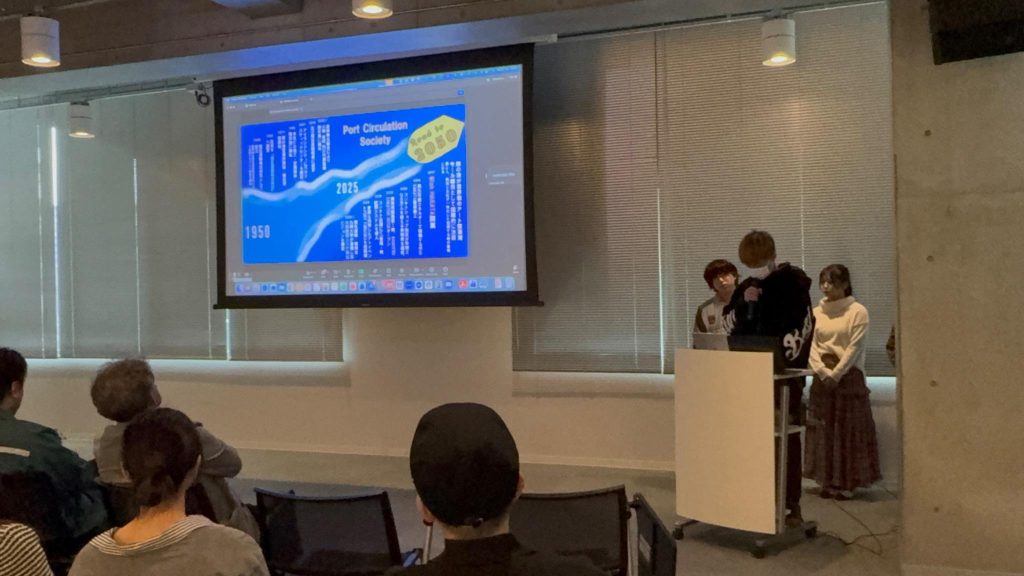 2025年11月27日には、プロジェクトのフェーズ 4として、学部生の2つの班によるプレゼンテーションが行われました。A班の発表は、「アート」をキーに福岡市那の津エリアを開発することによって、都市における港の機能を拡張するという内容。B班は、エネルギー問題の解決を発端として、博多港を中心とした未来都市のヴィジョンを提示しました。
