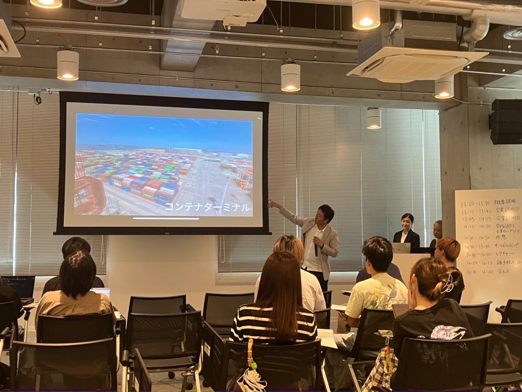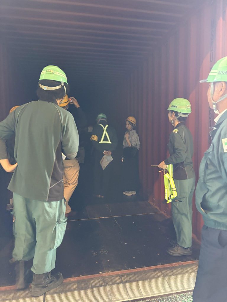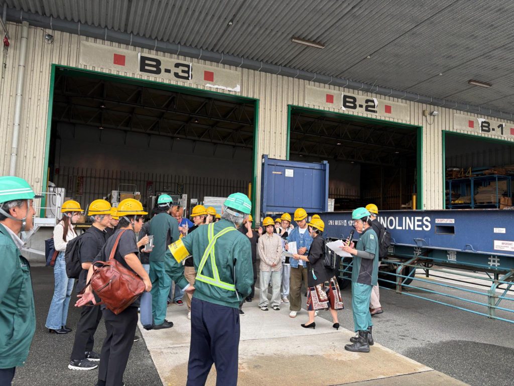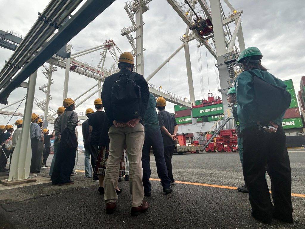フェーズ 2 当社のICロジスティックセンターを学生のみなさんが見学しました。加えて、博多港ふ頭株式会社さまのご協力により、博多港アイランドシティコンテナターミナルの見学が実現しました。