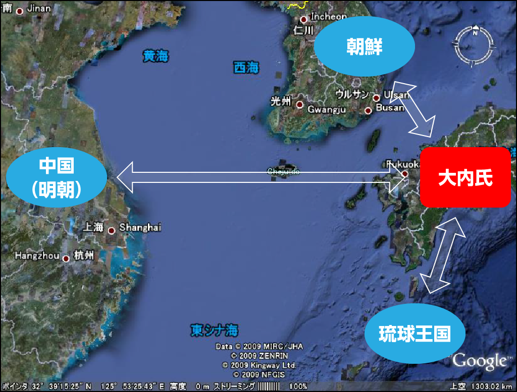 なんと言っても貿易をバンバンやって儲けていますから。中国とも朝鮮とも琉球とも貿易を行っていました。この三者と取引をしていたのは大内だけです。